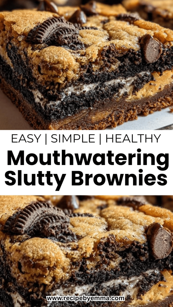Slutty Brownies are an indulgent three-layer dessert featuring a chocolate chip cookie dough base, a full layer of Oreo cookies, and a rich, fudgy brownie topping. Perfect for parties, bake sales, or whenever a serious chocolate craving hits.