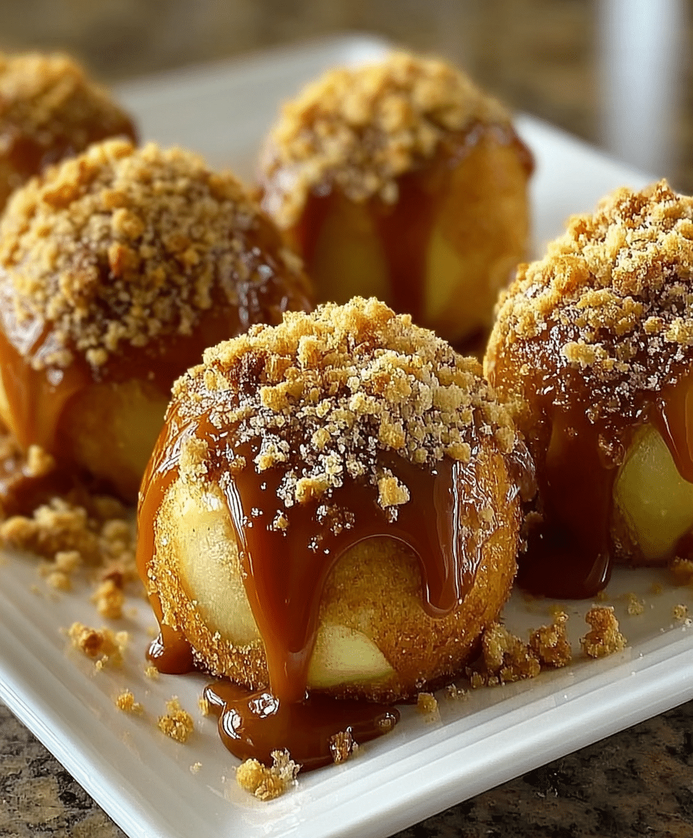 Golden, flaky Apple Caramel Bombs filled with spiced apple chunks and optionally creamy centers, rolled in buttery graham crumbs and finished with a glossy caramel drizzle. A cozy, comforting dessert that’s surprisingly simple to make and perfect for sharing.