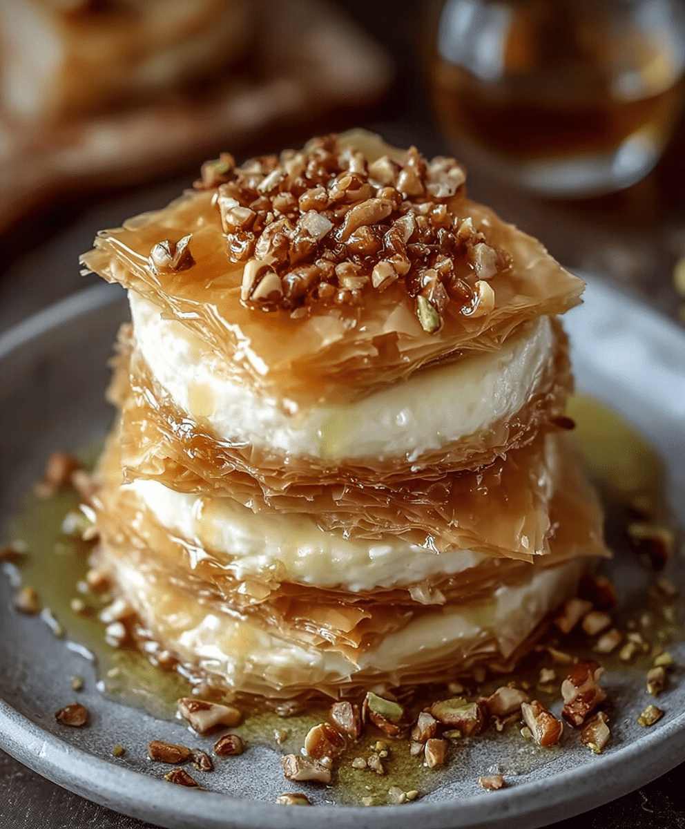 - Flaky and creamy: Combines crisp phyllo layers with smooth cheesecake filling.