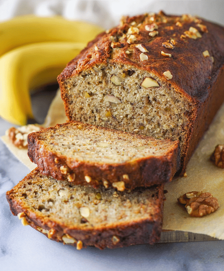 Perfect for breakfast, a snack, or even a simple dessert, this recipe transforms humble ripe bananas into a loaf that’s soft, tender, and bursting with flavor. And with the addition of crunchy walnuts or pecans, every bite is a harmonious blend of texture and taste.