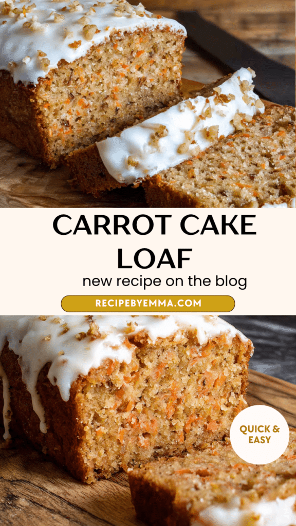 This carrot cake loaf recipe is a moist, warmly spiced homemade dessert made with freshly shredded carrots, cinnamon, nutmeg, and cloves, then topped with a rich cream cheese frosting. Unlike a traditional layered carrot cake, this carrot cake loaf bakes in simple loaf pans, making it easier, quicker, and perfect for everyday baking. If you love soft, tender carrot cake with cream cheese frosting, this easy loaf version delivers bakery-style flavor in a cozy, sliceable form. Ideal for holidays, brunch, dessert trays, or afternoon treats, this homemade carrot cake loaf is a comforting classic you’ll want to bake again and again.
