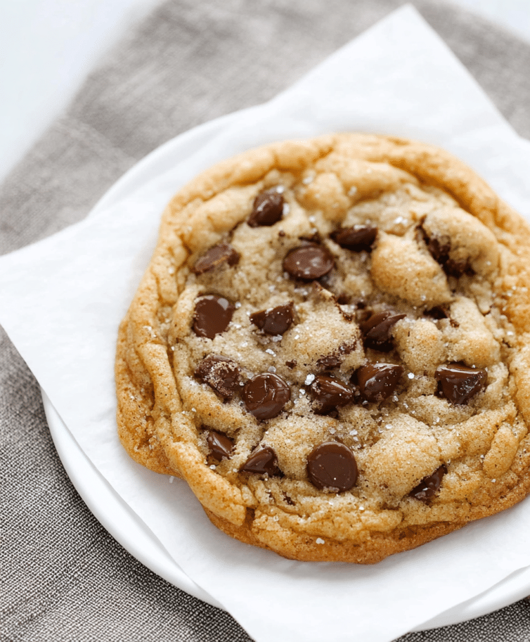 These big soft chocolate chip cookies are perfectly chewy with golden edges, lightly salted, and loaded with chocolate chips. A classic treat that everyone loves.