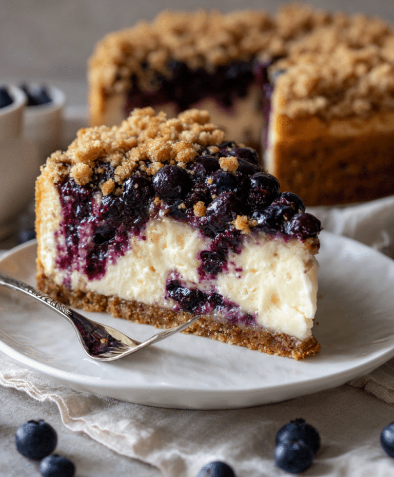 If you love desserts that balance richness with freshness, texture with creaminess, and indulgence with elegance, this Blueberry Crumble Cheesecake is destined to become a favorite. It brings together three beloved dessert components—cookie crust, creamy baked cheesecake, and buttery fruit crumble—into one stunning centerpiece that feels both comforting and special.