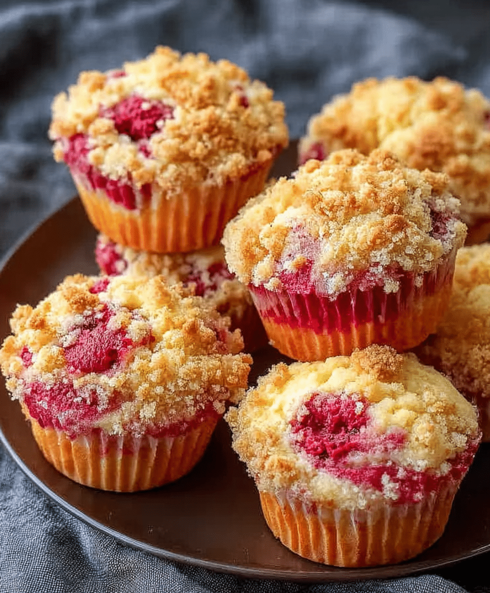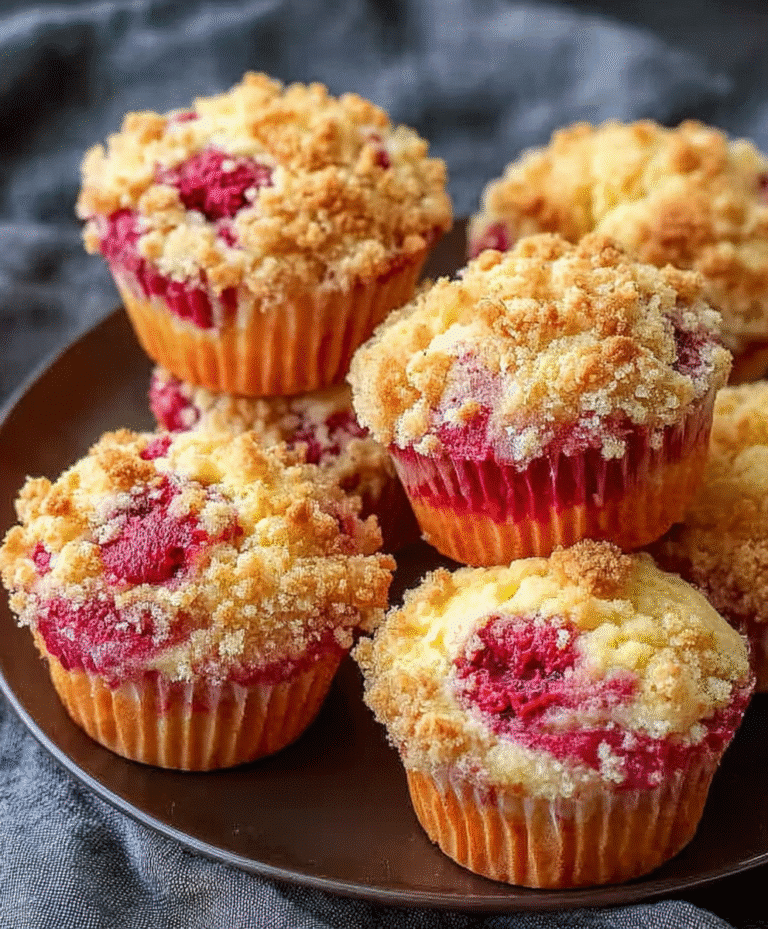 - Assemble Muffins: Fill liners, add 1 tbsp raspberry swirl on top, sprinkle streusel generously.