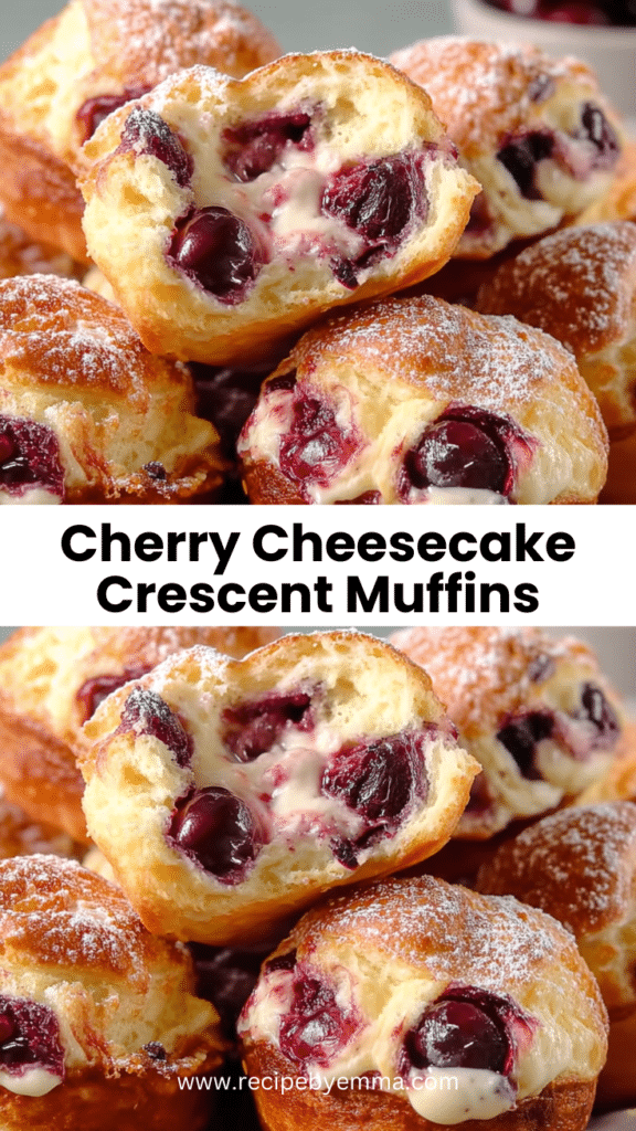 Cherry Cheesecake Crescent Muffins are a simple, versatile, and indulgent treat that’s perfect for breakfast, dessert, or snacks. Their flaky crescent dough exterior encases a creamy cheesecake filling and juicy cherries, delivering a bakery-quality experience in just 30 minutes.