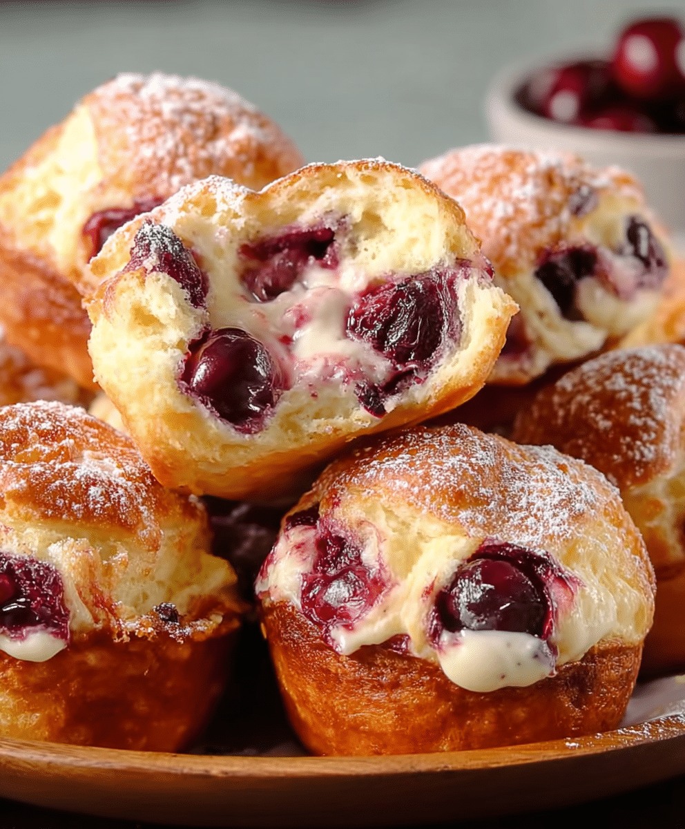 The combination of cream cheese and cherries makes these muffins rich and flavorful, while the crescent dough ensures a light, tender bite. Brush them with butter and sprinkle brown sugar on top for a golden, slightly caramelized finish.
