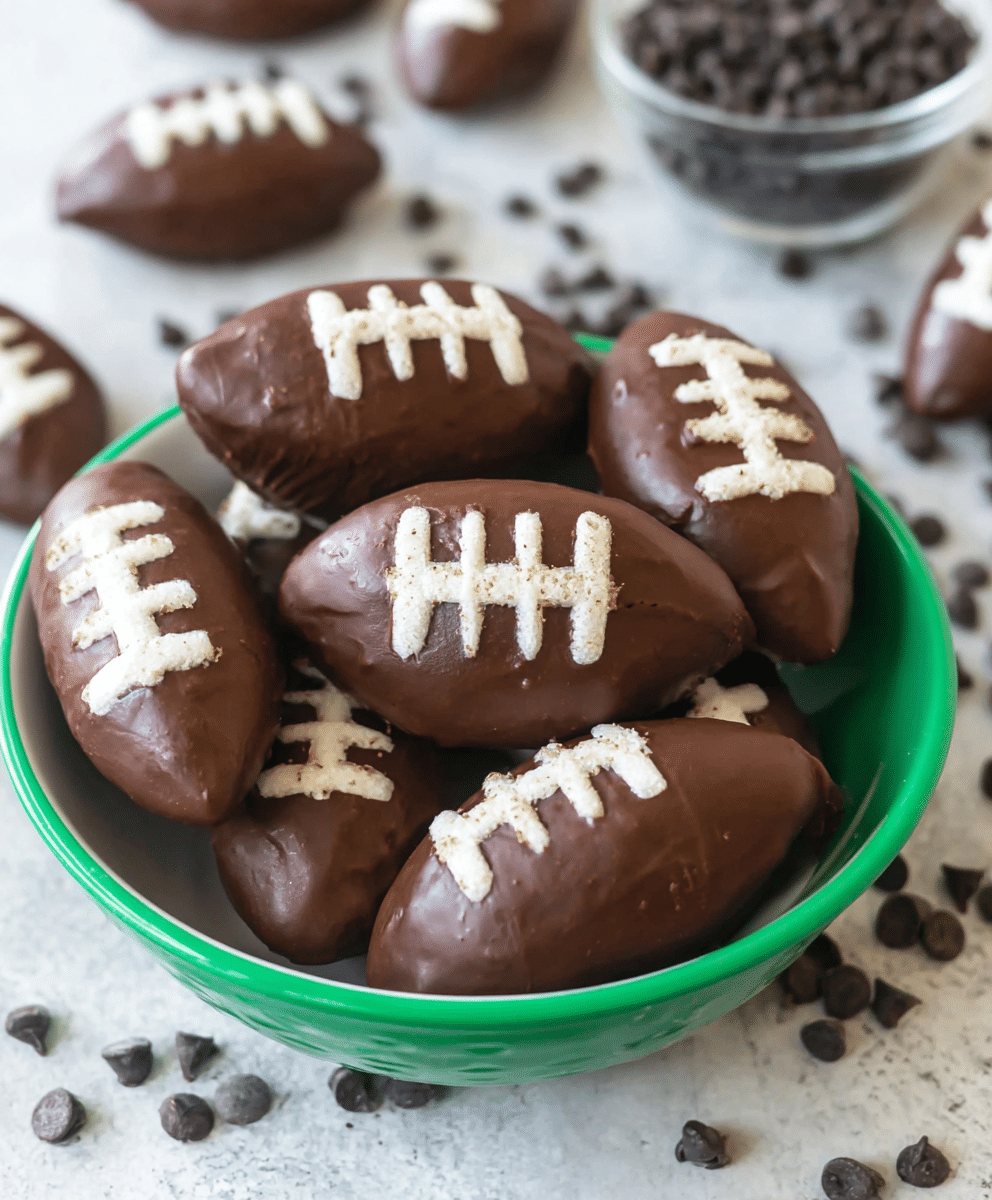 - Serving tip: Let chilled footballs sit at room temperature 10–15 minutes before serving so the chocolate isn’t too firm.