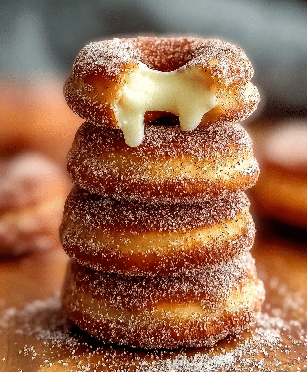 Soft, cheesecake-filled donut cookies with a crispy cinnamon-sugar coating, perfect for indulgent breakfast or dessert treats.