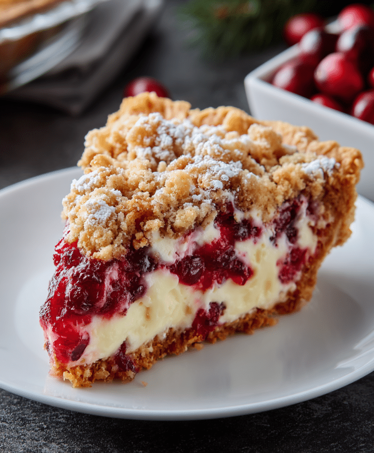 When the holidays or cozy evenings call for something indulgent yet festive, Cranberry Cream Cheese Crumb Pie answers the call. With a creamy, luscious filling, a tangy cranberry layer, and a crunchy, buttery pecan topping, this pie is both stunning and irresistible. It’s a show-stopping dessert that combines sweet, tart, and nutty flavors, making it perfect for Christmas, Thanksgiving, or any special gathering.