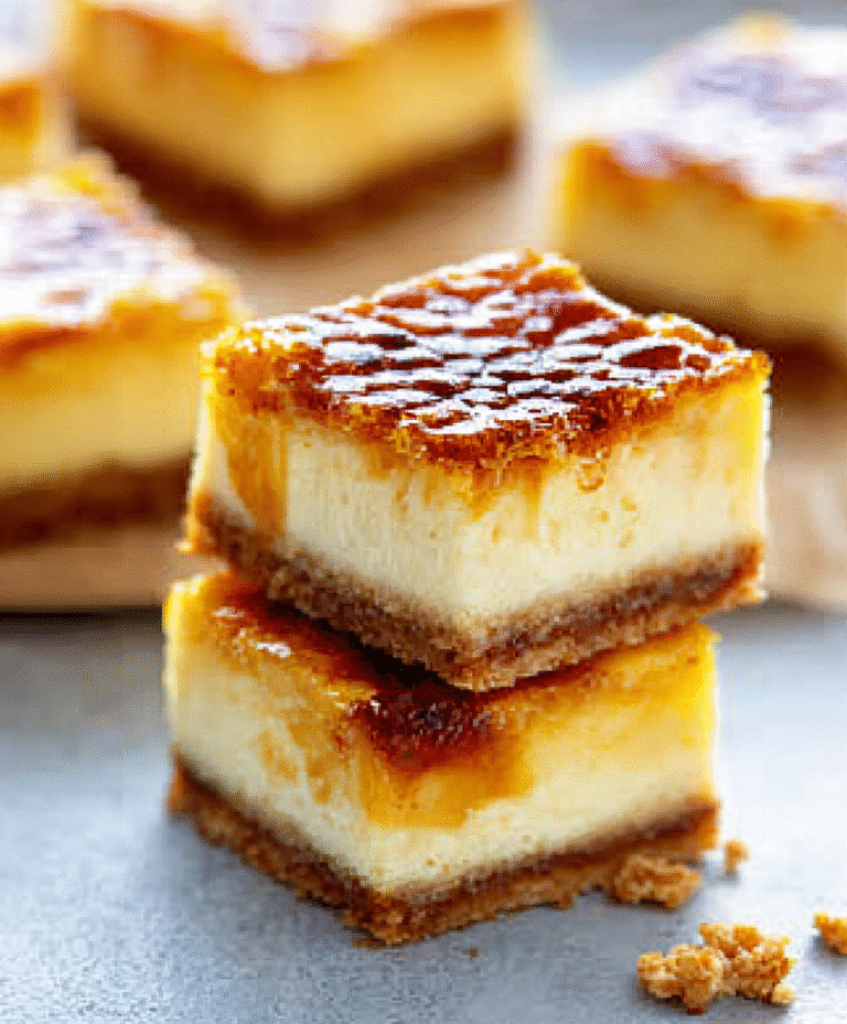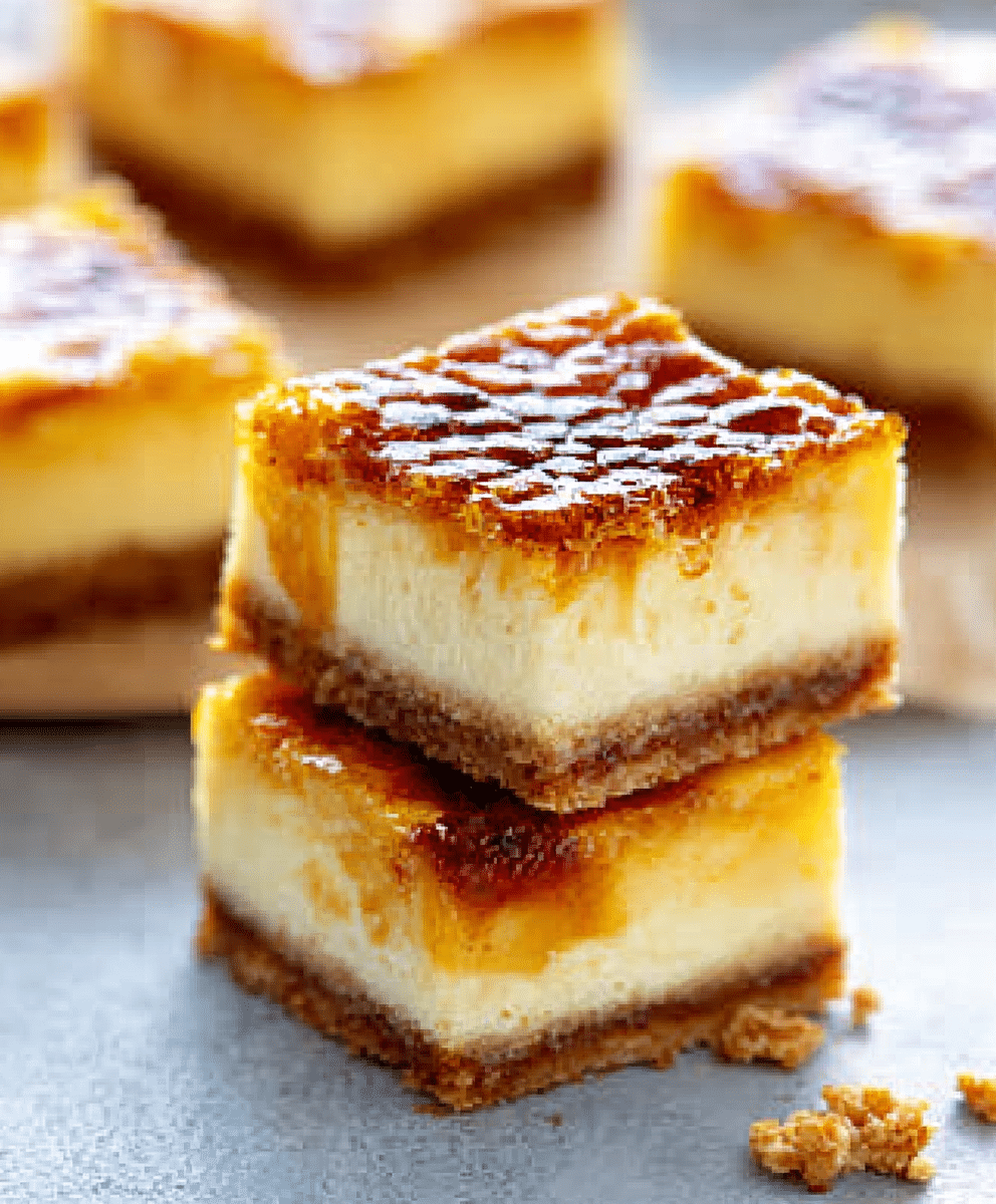 Whether you’re preparing a dessert for a dinner party, a holiday gathering, or just a sweet treat to enjoy at home, these bars will impress both visually and in taste. The delicate vanilla notes of the cheesecake and the crisp bruleed sugar create a flavor and texture combination that feels luxurious yet approachable.