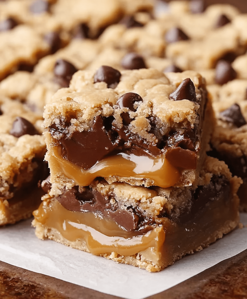These bars bring together everything we crave in a homemade dessert: soft and chewy cookie dough, gooey caramel, creamy peanut butter, and plenty of melted chocolate chips. The layers bake into a perfectly balanced bar with crisp edges, a tender center, and pockets of warm caramel throughout.