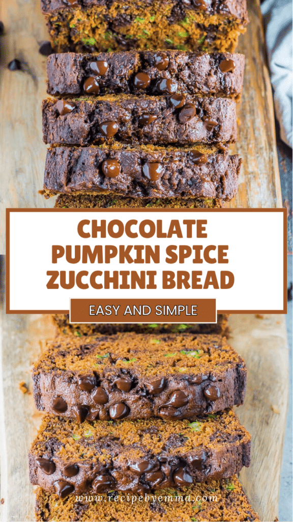 Soft, moist Chocolate Pumpkin Spice Zucchini Bread with warm spices, chocolate chips, and wholesome ingredients. Perfect for breakfast, snack, or dessert.