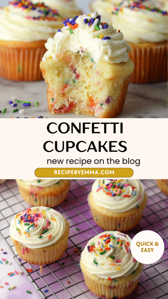 Once you make them, they’ll quickly become a go-to recipe for celebrations. Save this recipe, share it with friends, and enjoy the bright, happy flavor of homemade confetti cupcakes whenever you need a little sweetness and fun.