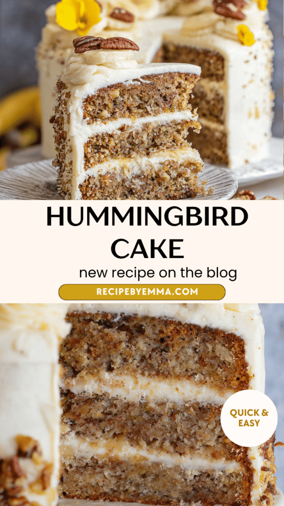 Whether you’re baking for a celebration or simply want a comforting homemade dessert, this Hummingbird Cake is always a standout. Save this recipe and enjoy a slice of Southern tradition that never goes out of style.