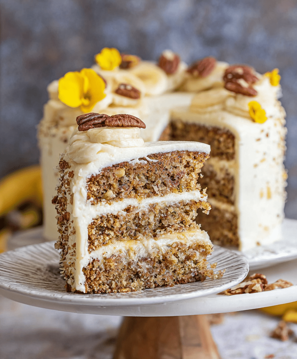What sets this cake apart is its combination of bananas, crushed pineapple, and warm spices like cinnamon, nutmeg, and cloves. These ingredients work together to create a soft, fragrant crumb that stays moist for days. The toasted pecans add a subtle crunch, while the cream cheese frosting brings everything together with a tangy, sweet finish.