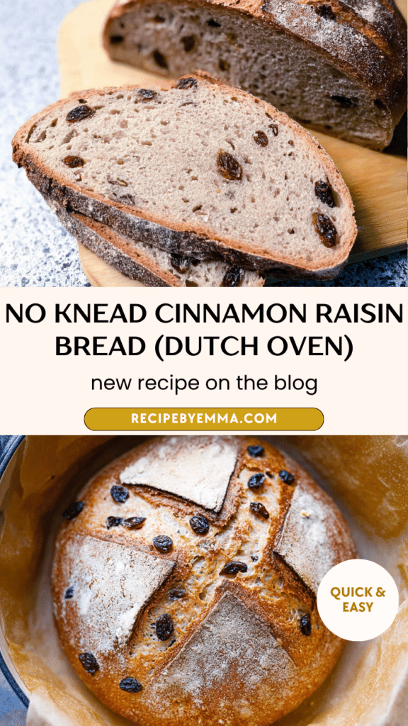 This no-knead cinnamon raisin bread is a true game-changer for home bakers. It’s fast, foolproof, and perfectly textured, with a flavor that feels both nostalgic and indulgent. Whether you’re baking for family breakfasts or sharing with friends, this recipe is destined to become a favorite. Save it, share it, and come back to enjoy more simple, homemade bread recipes that bring warmth to your kitchen. Your next loaf is just a Dutch oven away.