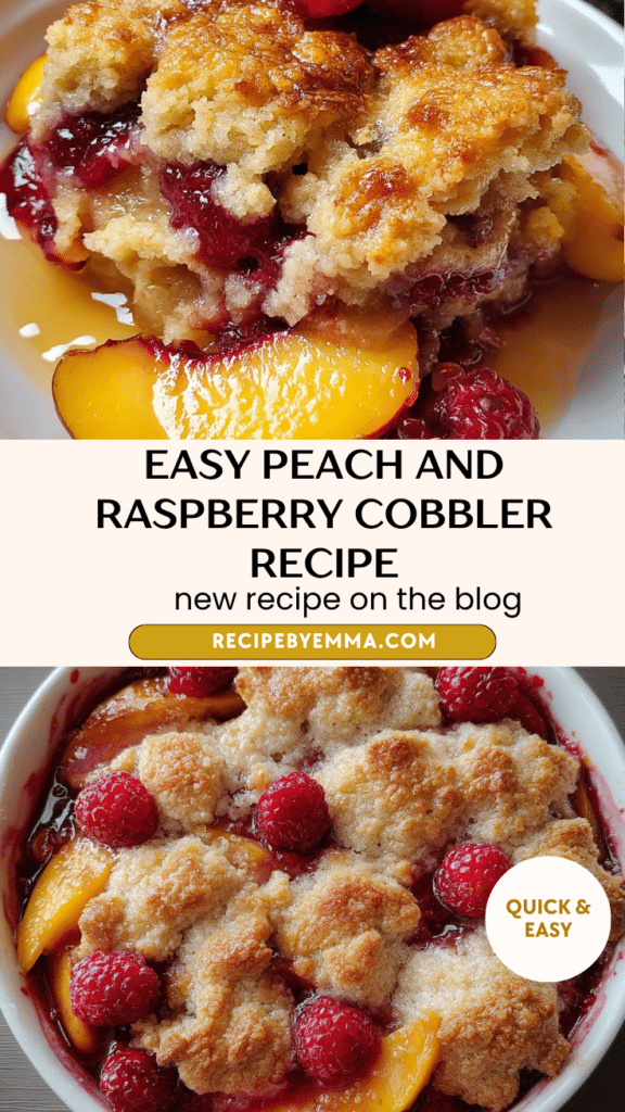 This easy peach and raspberry cobbler recipe is a warm, comforting summer dessert that brings together juicy peaches and tart raspberries under a soft, golden baked topping. Made with fresh fruit, a simple vanilla batter, and a buttery crust that bakes to perfection, this easy peach and raspberry cobbler recipe is the perfect balance of sweet, tangy, and comforting. Whether you’re hosting a summer gathering or craving a cozy fruit dessert, this easy peach and raspberry cobbler recipe delivers classic homemade flavor in every spoonful.