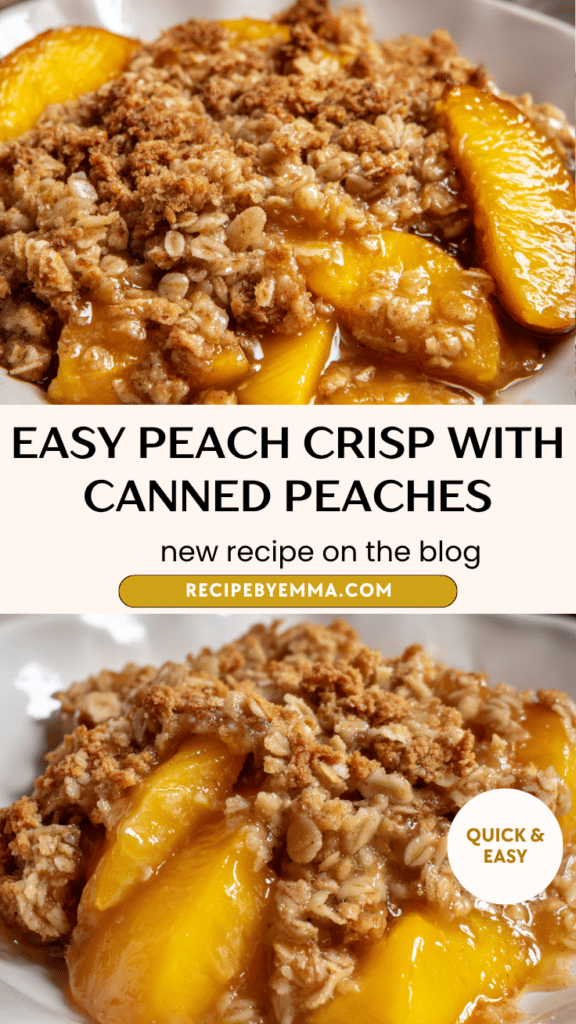 Whether you’re serving it at a family dinner, bringing it to a gathering, or simply craving something warm and sweet after a meal, this Easy Peach Crisp with Canned Peaches is a reliable, comforting dessert you’ll come back to again and again.