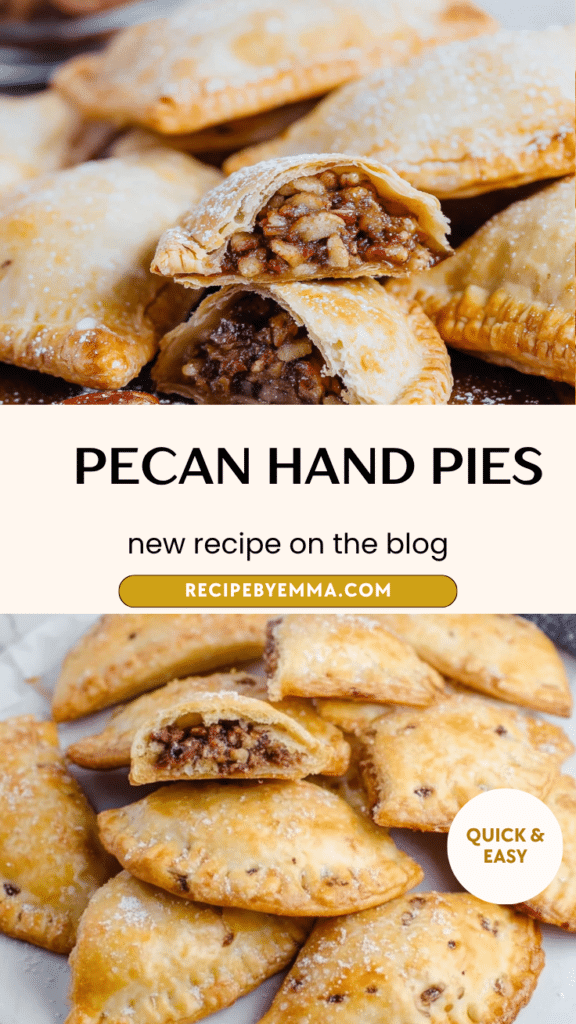 These Pecan Hand Pies are a flaky, buttery pastry dessert filled with a sweet caramelized pecan mixture made from chopped pecans, brown sugar, melted butter, vanilla, cinnamon, and optional orange zest, all wrapped inside a tender refrigerated pie crust. This easy pecan hand pie recipe is perfect for Thanksgiving, Christmas, holiday dessert tables, or cozy weekend baking. With crisp golden edges, warm spiced pecan filling, and a soft flaky crust, these homemade pecan hand pies deliver all the flavor of classic pecan pie in a convenient handheld form. If you’re looking for easy holiday desserts, mini pecan pies, or simple Southern-inspired pastries, this recipe is a must-bake favorite.