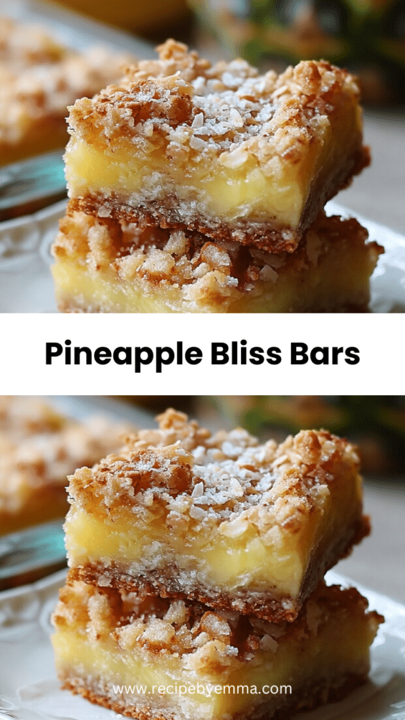 Pineapple Bliss Bars are the ultimate tropical dessert for any occasion, offering a buttery crust, luscious pineapple filling, and a delicate dusting of powdered sugar. With simple ingredients and an easy baking process, these bars deliver impressive flavor without complexity. Perfect for family gatherings, potlucks, or casual treats, this recipe will quickly become a favorite. Save, share, and enjoy these tropical bars anytime you crave a sweet, refreshing dessert.