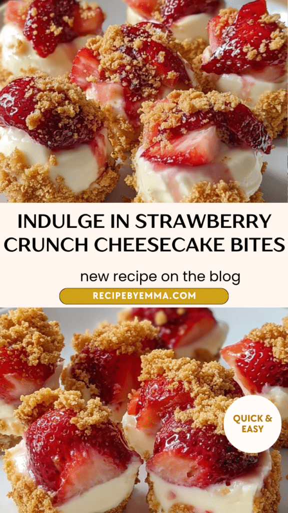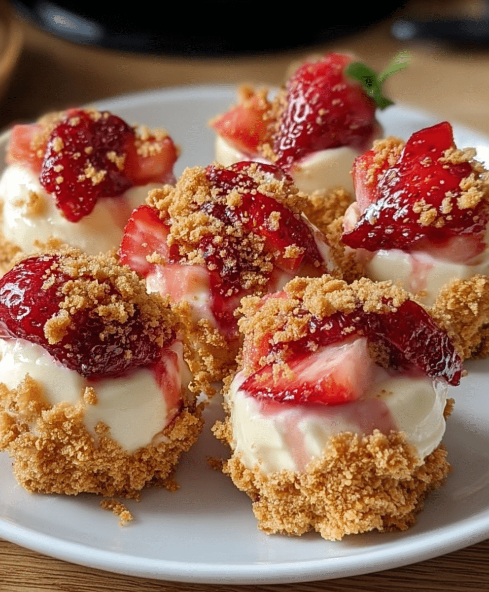 Easy Strawberry Crunch Cheesecake Bites – No-Bake Mini Dessert Recipe