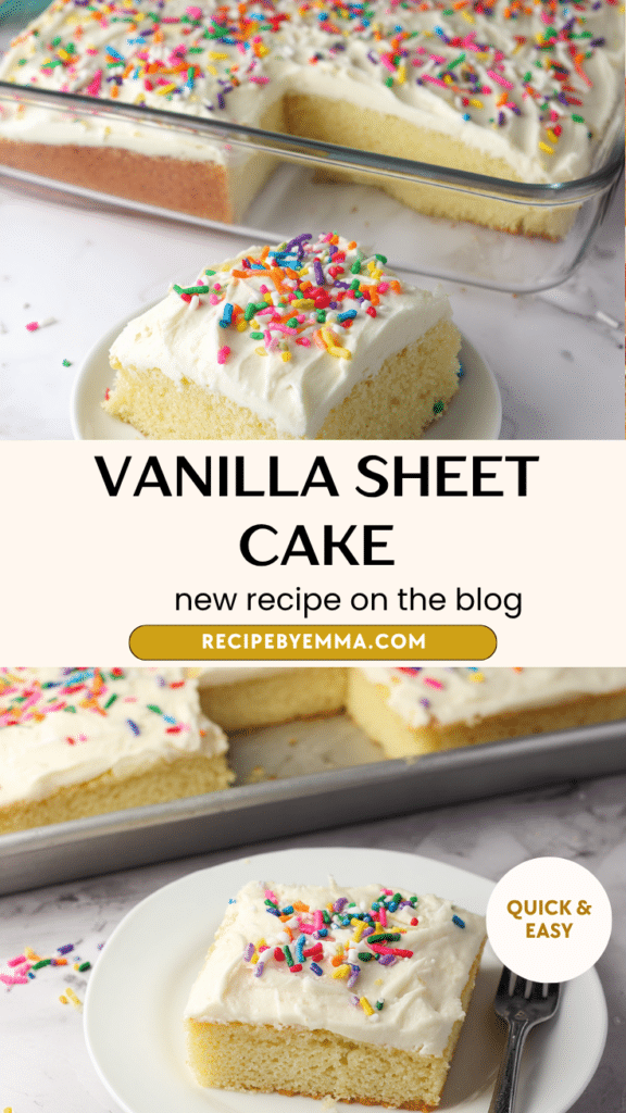Whether you’re baking for a birthday, holiday, or just because you want something sweet and comforting, this vanilla sheet cake never disappoints. It’s easy enough for beginners but impressive enough for any occasion.