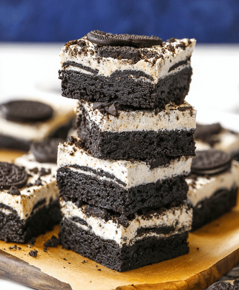 - Double Oreo Goodness: Oreos in both the brownie base and the creamy topping make each bite extra decadent.
