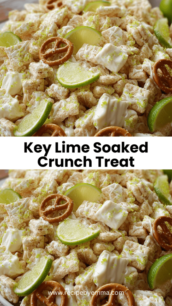 A refreshing and crunchy treat infused with the vibrant zest of key lime, this Key Lime Soaked Crunch Treat is the kind of no-bake dessert that disappears fast at summer gatherings. With creamy white chocolate binding together crispy cereal, salty pretzels, and pillowy marshmallows, each bite delivers a bright citrus finish that keeps you coming back for more.