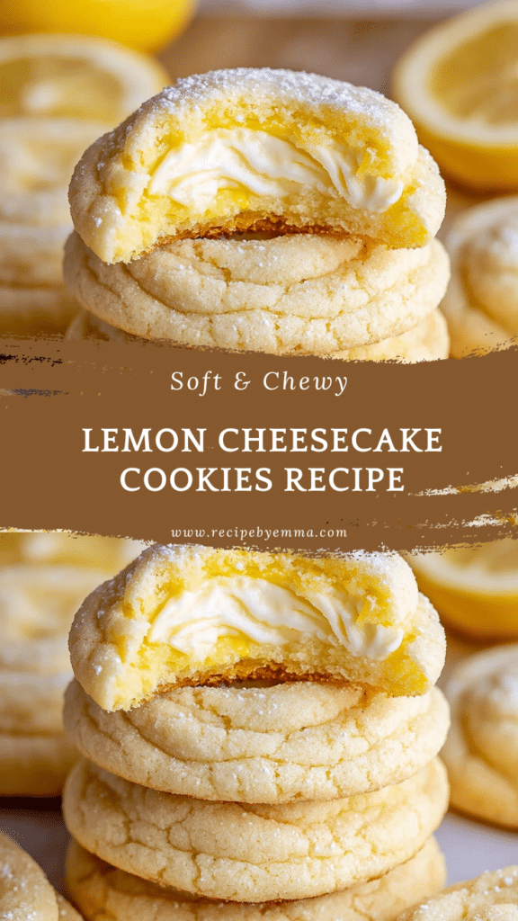 These Lemon Cheesecake Cookies are an elegant, flavorful dessert that combines bright citrus with rich, creamy cheesecake. Perfect for family treats, dessert tables, or afternoon snacks, they’re fun to bake, impressive to serve, and utterly irresistible. Save this recipe for a sunny, tangy dessert that everyone will love. Share, bake, and enjoy a burst of lemony cheesecake delight in every bite.
