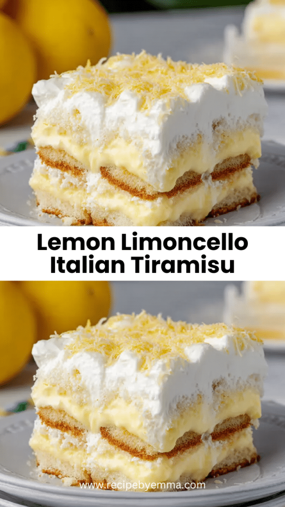 Lemon Limoncello Italian Tiramisu captures everything we love about Italian desserts — simplicity, elegance, and bold flavor. The vibrant lemon syrup, airy mascarpone cream, and delicate ladyfingers come together in a dessert that feels both indulgent and refreshing.
