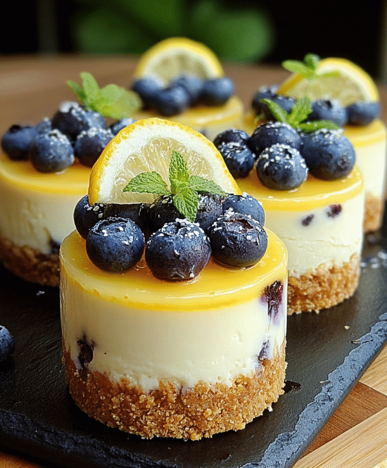 These Mini Lemon Blueberry Cheesecakes are a must-try for any home baker looking to impress guests with minimal effort. Their perfect combination of creamy cheesecake, zesty lemon, and fresh blueberries makes them a standout dessert. They are approachable, make-ahead friendly, and can be customized to suit dietary needs or personal taste.
