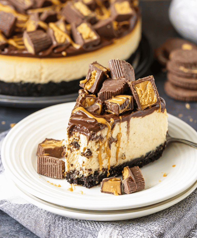 If you are a peanut butter lover, get ready to meet your new favorite dessert. This No Bake Reese’s Peanut Butter Cheesecake is a rich, creamy, and indulgent treat that combines two of the best things in the dessert world: peanut butter and chocolate. Perfect for parties, special occasions, or simply as a treat to satisfy your sweet tooth, this cheesecake is as visually impressive as it is delicious.