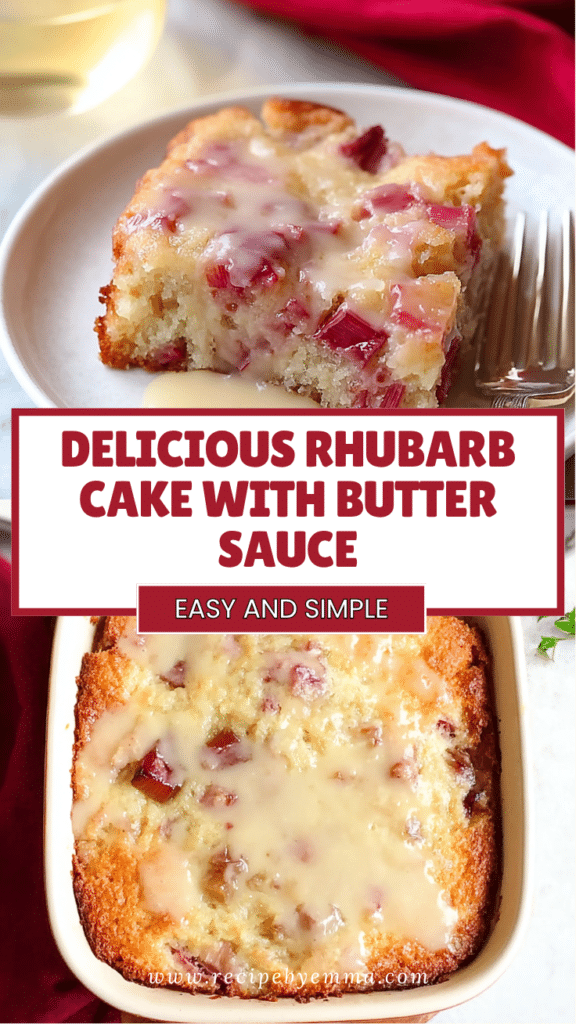 The cake is wonderfully versatile: serve it warm with the butter sauce for an indulgent dessert, or enjoy it cooled for a lighter treat. With its soft, moist texture and rich, sweet sauce, it’s the perfect way to showcase seasonal rhubarb and create a comforting homemade dessert that tastes like it came from grandma’s kitchen.