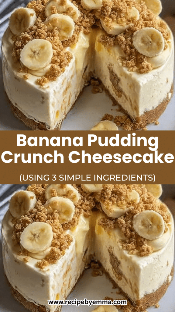 Banana Pudding Crunch Cheesecake is a rich, creamy dessert that combines classic banana pudding flavor with a smooth cheesecake base and a buttery vanilla wafer crunch topping. A perfect show-stopping dessert for holidays, gatherings, or special occasions.