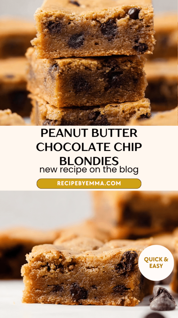 Chewy Peanut Butter Chocolate Chip Blondies – Easy Homemade Cookie Bars