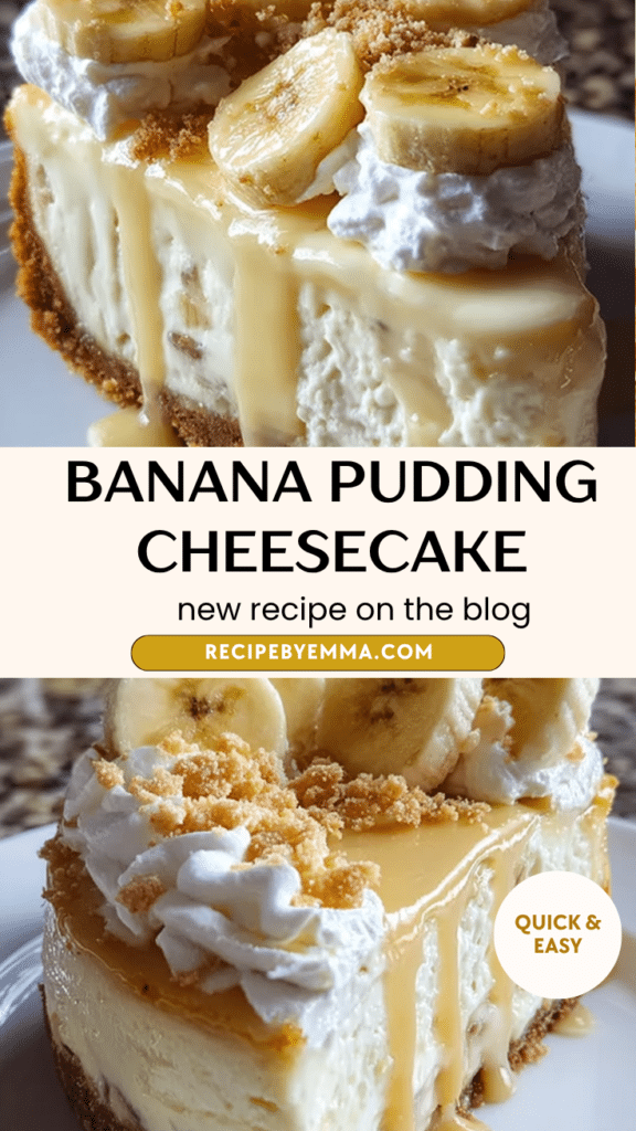 A creamy banana pudding cheesecake made with vanilla wafer crust, fresh bananas, and rich cheesecake filling.