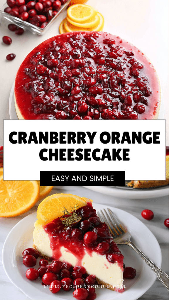 Celebrate the holidays with this easy and festive Cranberry Orange Cheesecake, a creamy and citrusy dessert that’s perfect for gatherings and special occasions. This cheesecake features a smooth, rich filling infused with fresh orange zest and juice, balanced by the tart brightness of a homemade cranberry topping. It’s an ideal make-ahead dessert that saves time during busy holiday hosting while still impressing guests with its vibrant colors and decadent flavor. With a buttery graham cracker crust, velvety filling, and glistening cranberry glaze, this cheesecake offers the perfect combination of creamy texture and tangy fruitiness. Perfect for Christmas, Thanksgiving, or any winter celebration, this recipe is simple enough for beginner bakers yet elegant enough to steal the show at the dessert table.