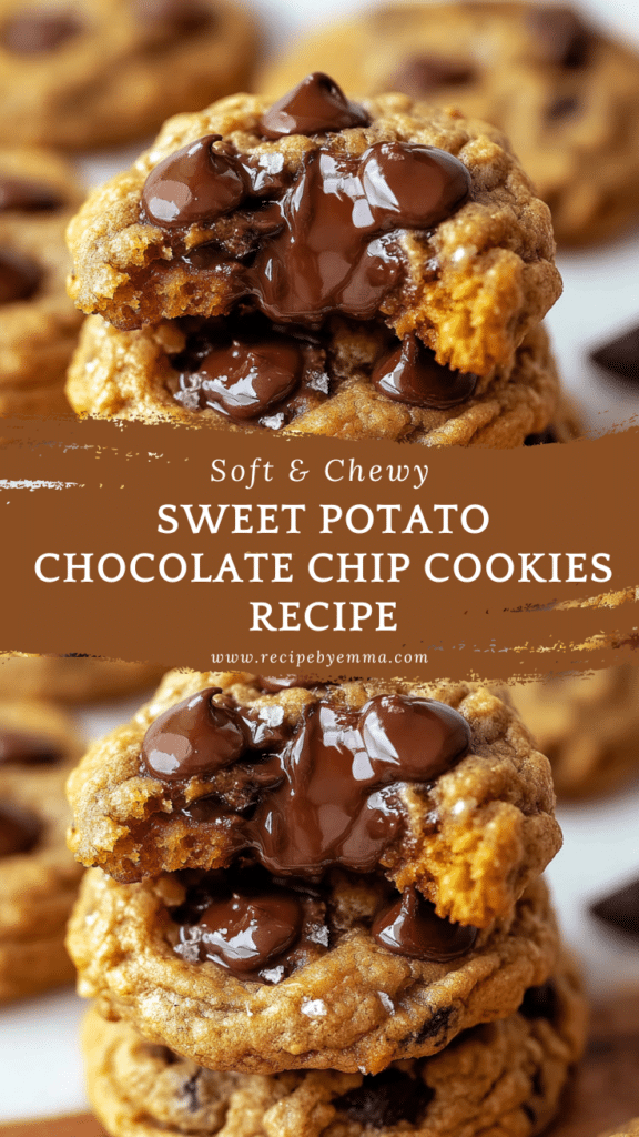 Soft, chewy Sweet Potato Chocolate Chip Cookies combining the earthy flavor of mashed sweet potatoes with sweet chocolate chips, oats, and warm spices. Perfect for snacking, dessert, or gifting.