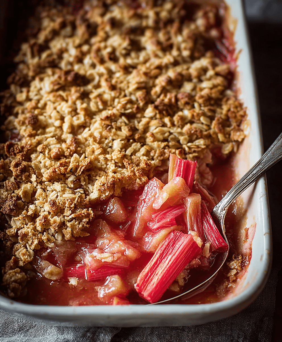 Serve the Rhubarb Crisp warm from the oven for the best texture. Top with a scoop of vanilla ice cream or a dollop of whipped cream for a classic dessert experience. Garnish with fresh rhubarb slices or a sprinkle of cinnamon for a seasonal presentation.