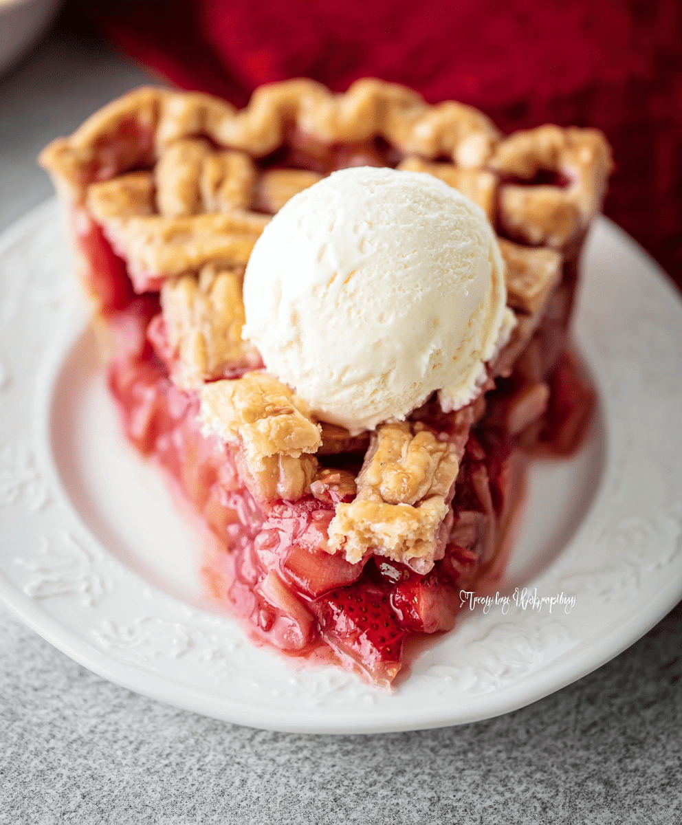 This pie works wonderfully for a wide range of occasions. Serve it at summer picnics, weekend brunches, holiday dinners, or casual family meals. Its vibrant red filling and golden crust make it visually appealing, while the balance of sweet strawberries and tart rhubarb delivers a perfect flavor combination. The buttery, tender crust contrasts beautifully with the juicy, slightly firm fruit, creating a pie that’s as enjoyable to eat as it is to look at.