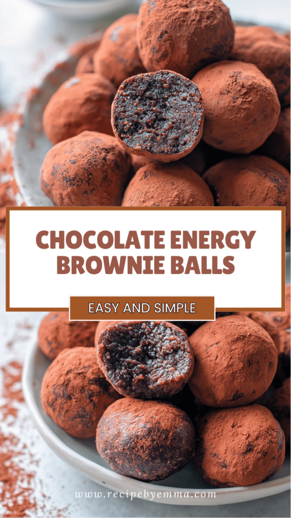 These Chocolate Energy Brownie Balls are a quick, nutritious, and indulgent snack that satisfies chocolate cravings without refined sugar. Fudgy, naturally sweet, and protein-packed, they’re perfect for post-workout snacks, energy boosts, or healthy desserts. Easy to prep, freeze, and store, they make a convenient and delicious treat for busy days. Make a batch today, share with family or friends, and enjoy these guilt-free chocolate bites anytime. Save this recipe, try variations, and keep these brownie balls on hand for a healthy, chocolatey snack that always hits the spot.