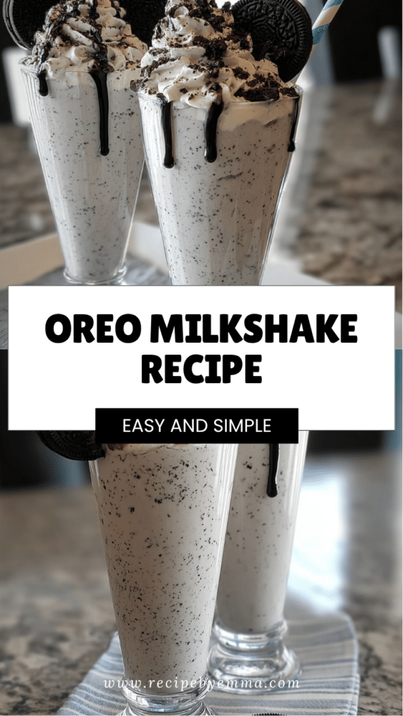 A creamy and delicious Oreo milkshake made with crushed Oreos, vanilla ice cream, and whole milk, topped with whipped cream and chocolate syrup.