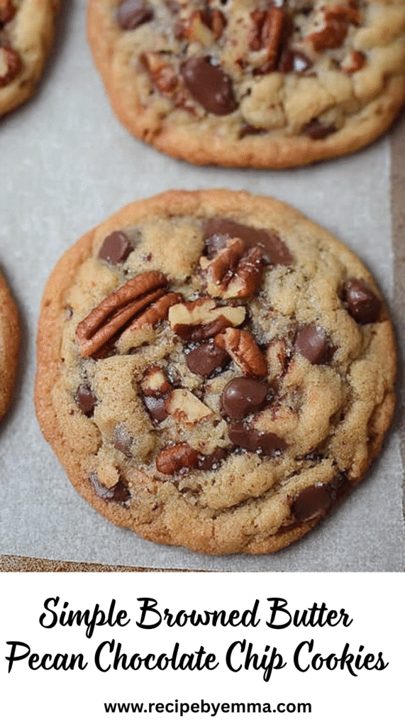 These cookies are rich and nutty with a caramel undertone from the browned butter. The toasted pecans add crunch, while chocolate chips provide melty, sweet pockets in every bite. The texture is a balance between chewy and crisp, satisfying every cookie lover’s cravings.